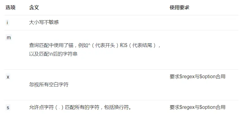 使用$regex时,有以下几种用法:
