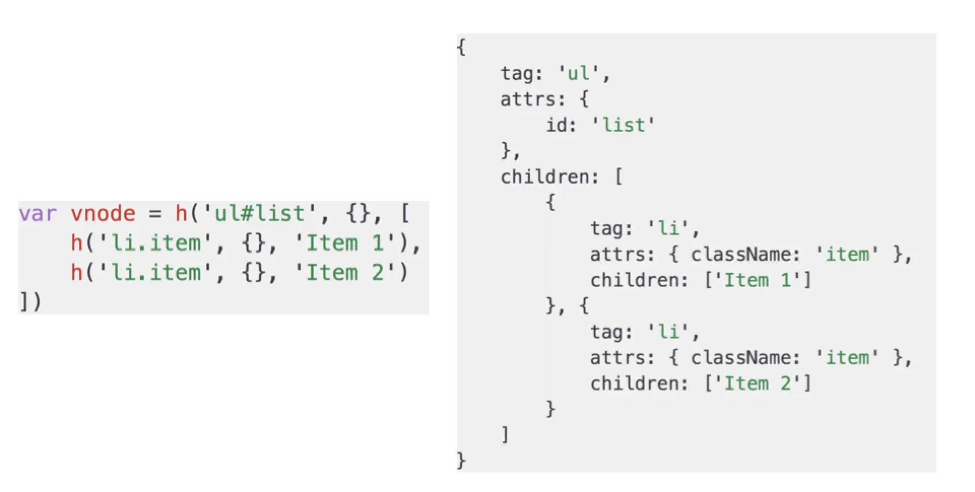 也就是说使用h函数可以生成类似于右边的vnode结构。