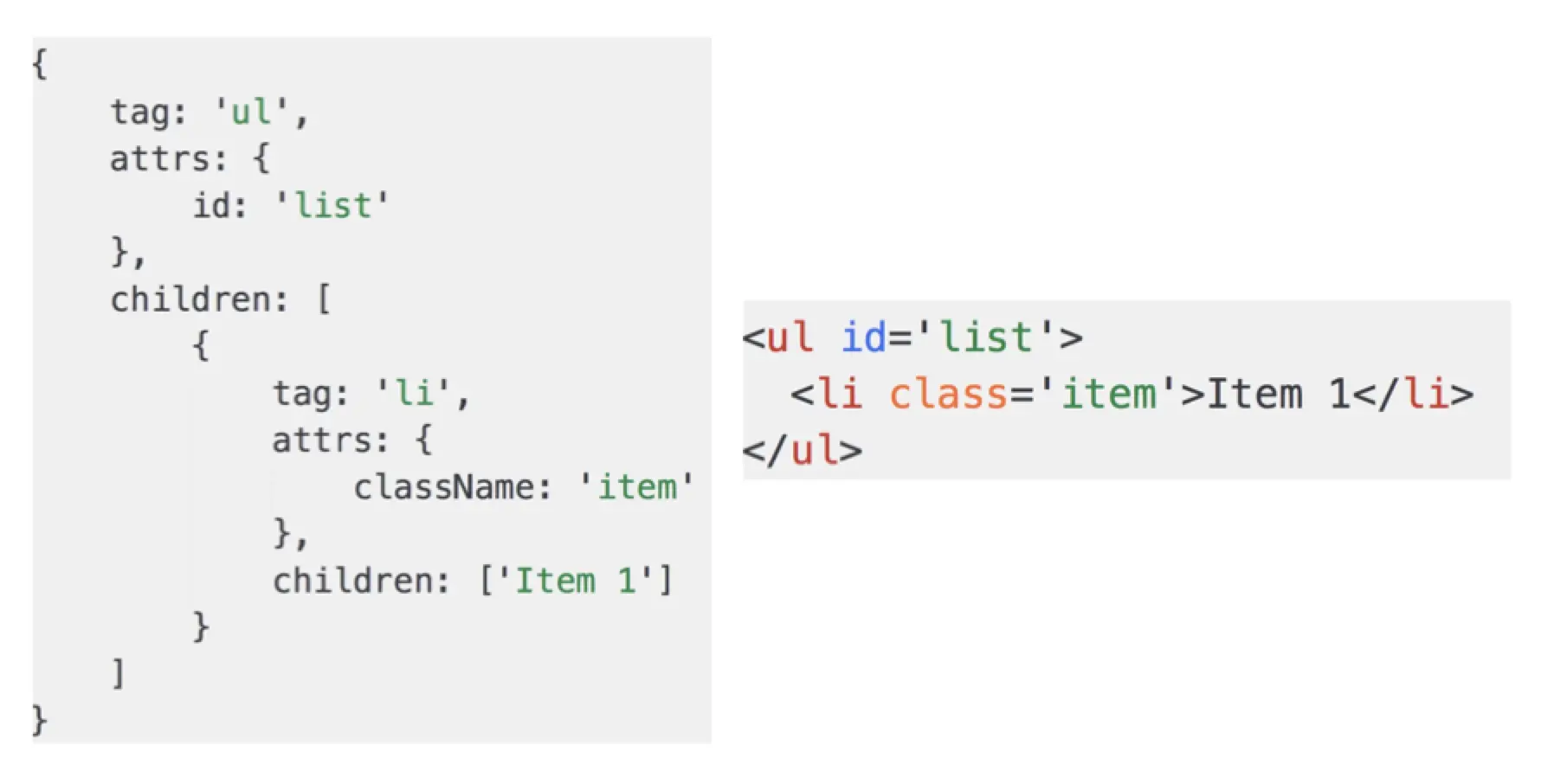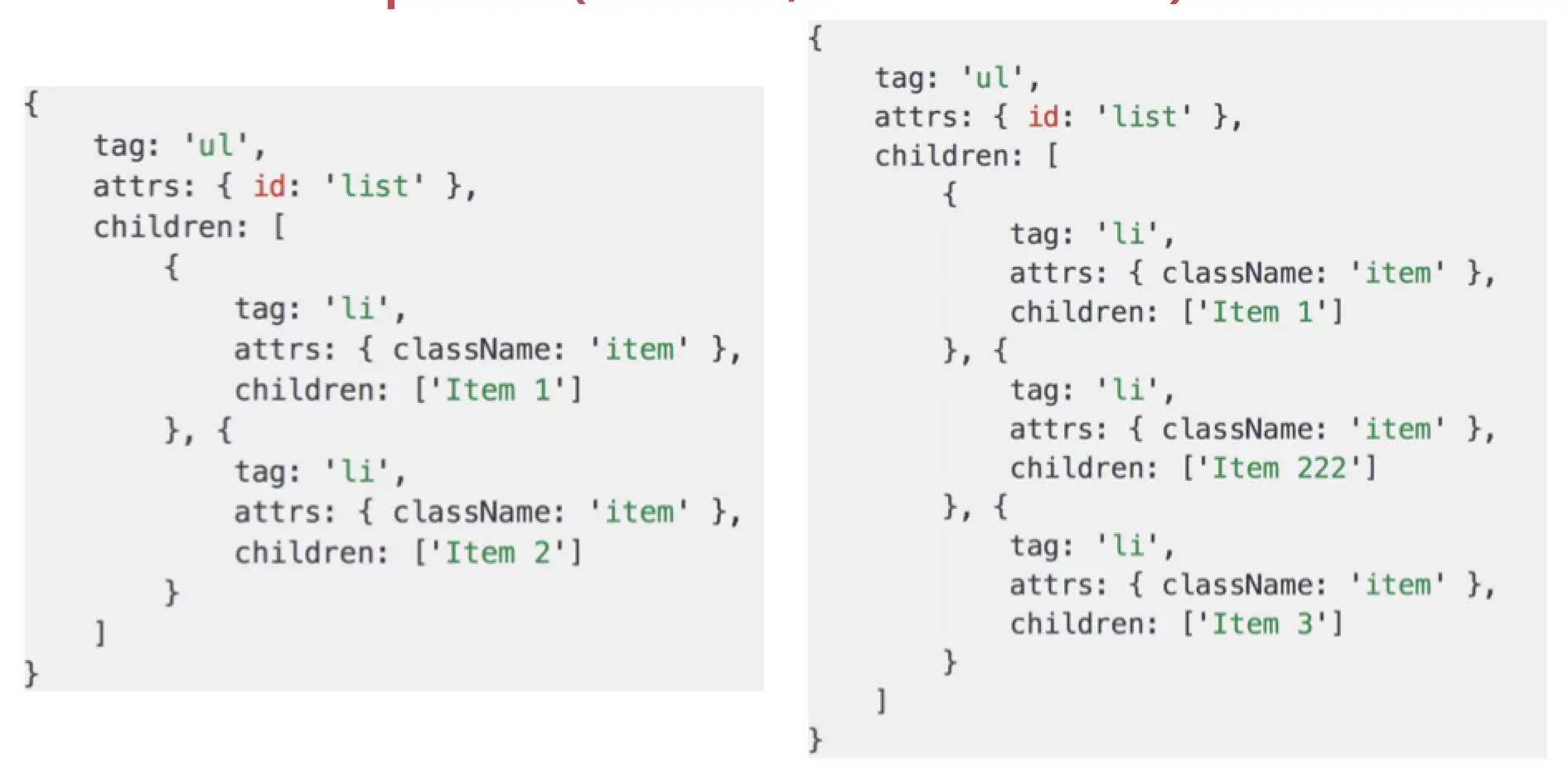 <li class='item'>item 2</li></ul>那么为什么会有VDOM(virtual dom简称)这样的结构呢?