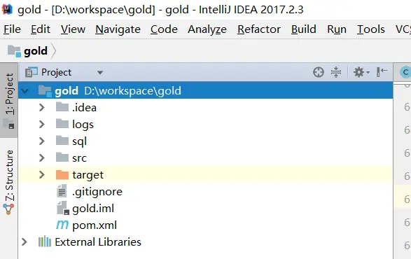 2、将gold仓库git下来,以gold目录创建一个springboot工程。如下图所示: