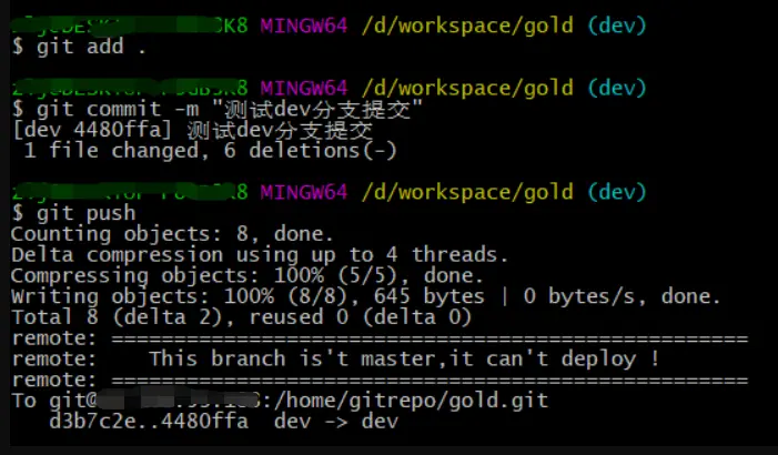 1、在服务器上初始化一个git仓库用于个人的项目开发,本项目以gold.git为仓库。