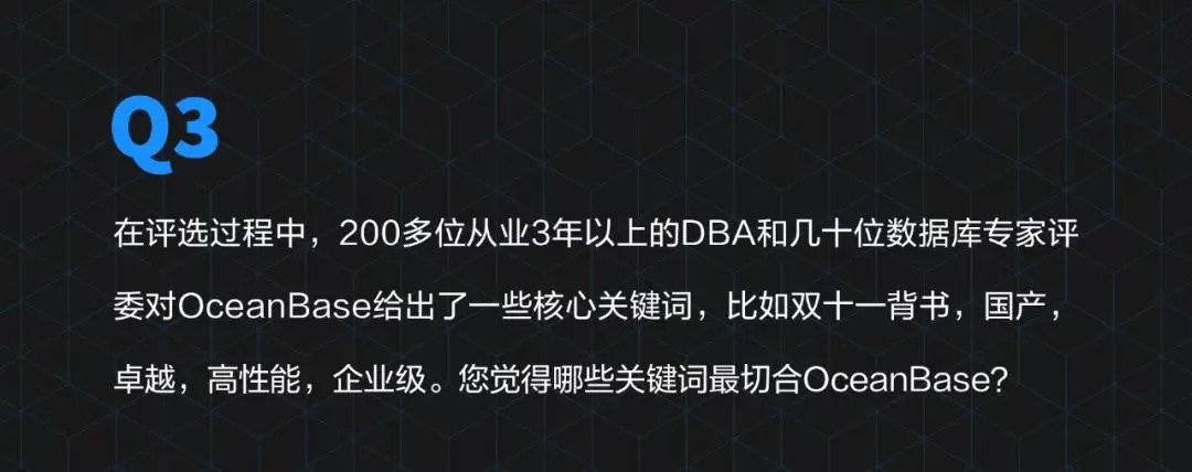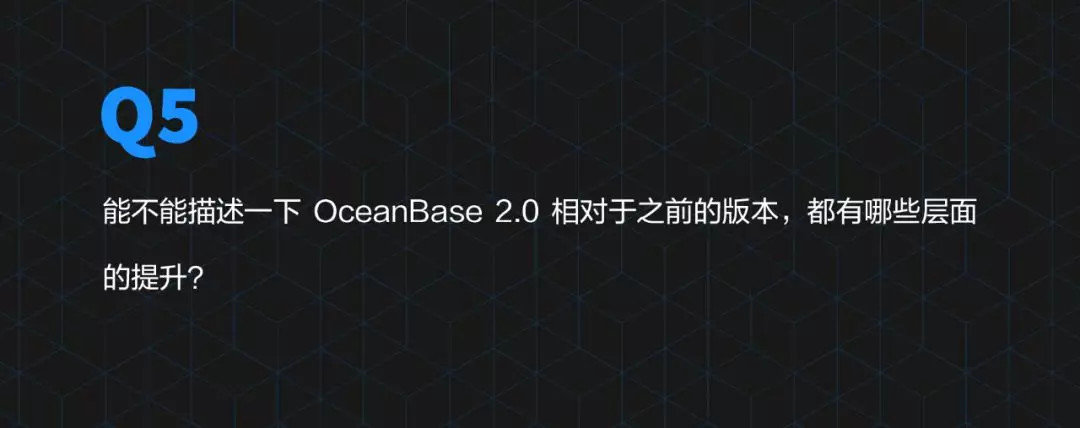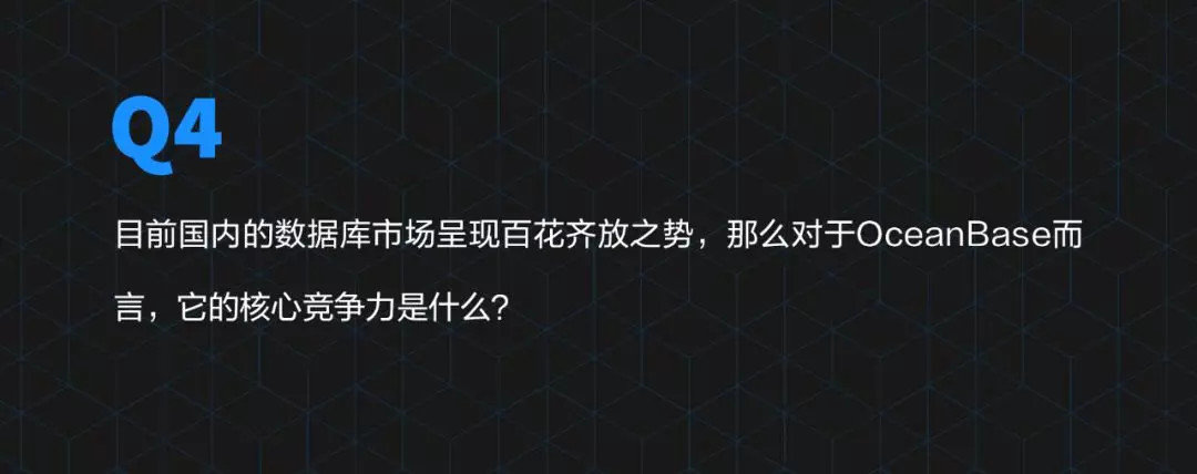 OceanBase在这方面已经做了很多,包括性能方面,高可用方面,可靠性方面,甚至很多突破性的技术的这些率先使用,我们都会持续的发挥出技术的最大优势来。