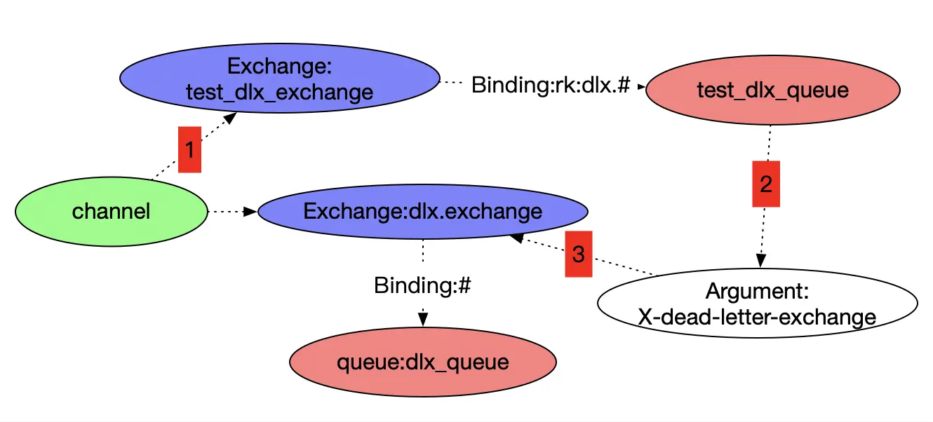 定义:利用DLX 当消息在一个队列中变成死信后,它能重新push到另一个exchange,这个exchange称为DLX。