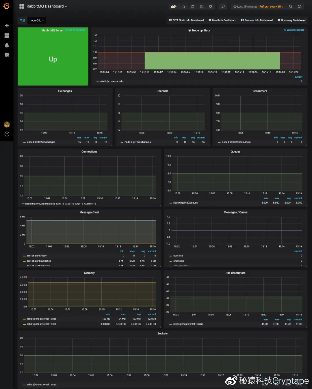 CITA 微服务及MQ进程的存活、进程的 CPU、内存使用率、IO