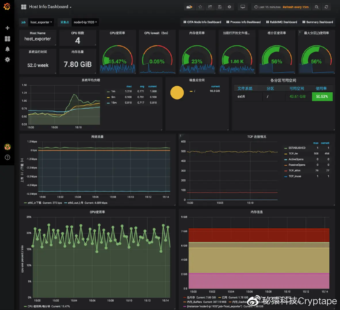 各节点运行主机的信息,包括系统负载、CPU、内存、硬盘使用率、网络流量