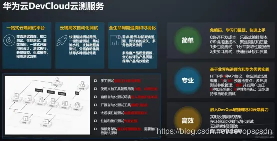 华为DevOps模式下的软件测试体系的分享主要由 “测试对象的识别、测试组织与流程的演变、测试工具与技术的应用、测试管理和自动化测试”四个领域的关键内容组成。华为云近期推出了7天玩转性能&接口测试系列课程,添加小助手微信(devcloud9)即可免费参与学习。