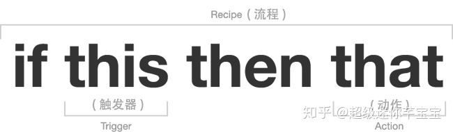IFTTT是一个被称为 “网络自动化神器” 的创新型互联网服务理念,它很实用而且概念很简单。IFTTT全称是 If this then that ,意思是如果满足“this”条件,则触发执行“that”动作。IFTTT由三部分构成,分别为Trigger、Action和Recipe。