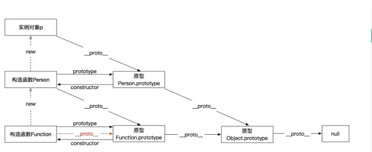 所有引用类型,它的’_ _ proto_ _'属性指向它的构造函数的’prototype’属性