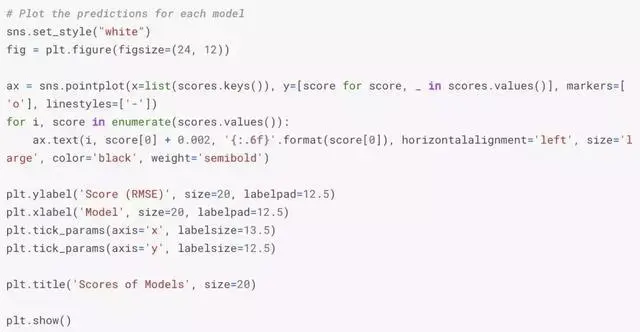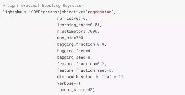 - 模型:每次交叉验证拟合7个模型(包括ridge、svr、gradient boost、random forest、xgboost、lightgbm regressors等)