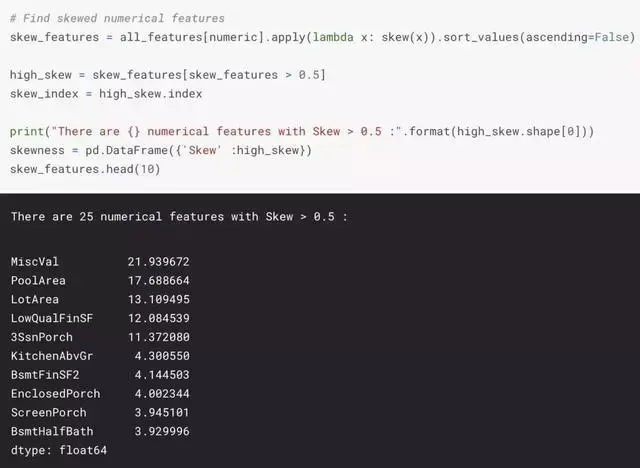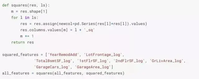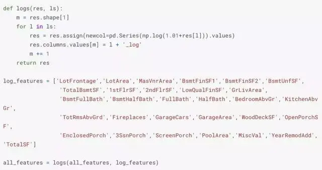 我们通过计算数值特征的对数和平方变换来创建更多的特征。