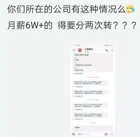 在互联网匿名社区,一名程序员晒出了自己的薪资,其称自己每个月月入6万多,但是公司每次都是分两次转账,不知道为何。