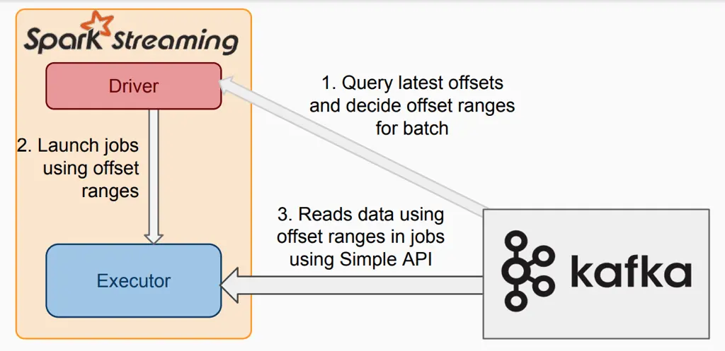 与receiver模式类似,不同在于executor中没有receiver组件,从kafka拉去数据的方式不同。