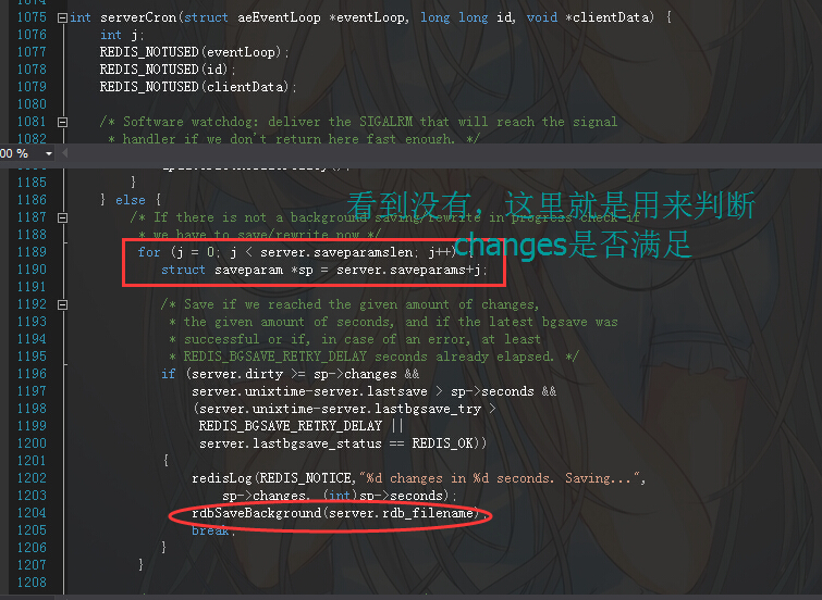 2 然后我们通过if发现,如果终满足,就会最终调用rdbSaveBackground来持久化我们的rdb文件,简单吧。。。