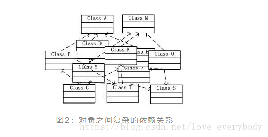 齿轮组中齿轮之间的啮合关系,与软件系统中对象之间的耦合关系非常相似。对象之间的耦合关系是无法避免的,也是必要的,这是协同工作的基础。现在,伴随着工业级应用的规模越来越庞大,对象之间的依赖关系也越来越复杂,经常会出现对象之间的多重依赖性关系,因此,架构师和设计师对于系统的分析和设计,将面临更大的挑战。对象之间耦合度过高的系统,必然会出现牵一发而动全身的情形。