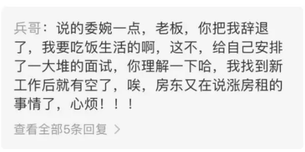 网友们看到后纷纷留言支招,其中有的网友说既然都被开除了,就没关系了,也就没必要回去讲代码了,不过毕竟是同事,拒绝的方式可以婉转一点,免得大家脸上不好看;也有的网友说这种事情怎么能忍?还命令的口气,直接怼回去!还有的人认为回去是不可能回去的,只能一直变着花样的拖着了;也有网友建议直接把老板电话微信拉黑就得了,老板简直想太多。不难看出,网友们的建议都略有偏激,有报复心理存在,毕竟谁被开除也不会高兴的,但是就事论事的说,这件事情其实还是有很多更好的解决方法的。