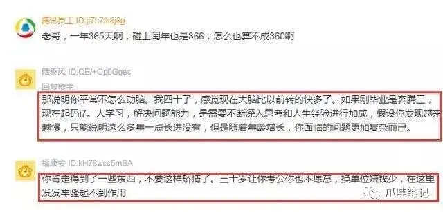 也有网友觉得年龄不是问题。那说明你平常不怎么动脑。我四十了,感觉现在大脑比以前转的快多了。如果刚毕业是奔腾三,现在起码i7。人学习,解决问题能力,是需要不断深入思考和人生经验进行加成,假设你发现越来越慢,只能说明这么多年一点长进没有,但是随着年龄增长,你面临的问题更加复杂而已。