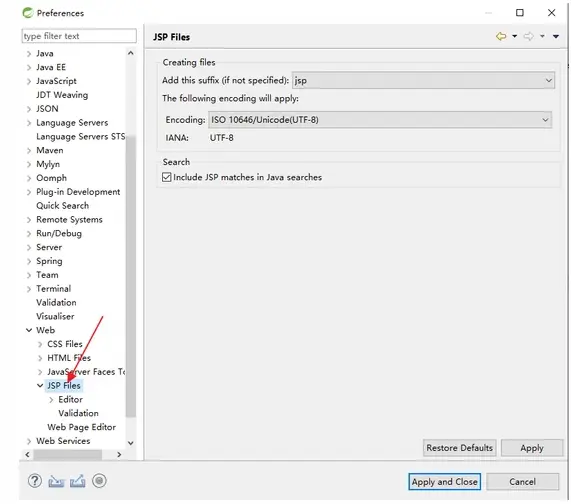 这是在 Eclipse 中设置文件编码,如果是在 IntelliJ IDEA中,则不需要设置JSP文件编码,因为默认就是 UTF-8,只需要提前设置下工程编码即可
