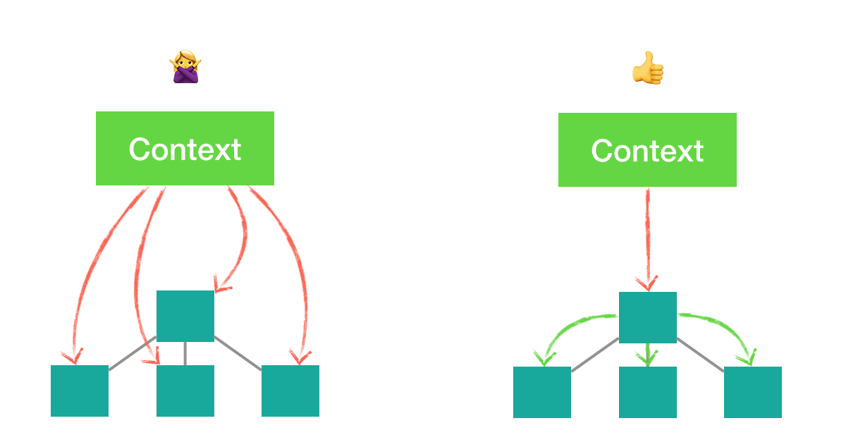 其实 Context 的用法和响应式数据正好相反。笔者也看过不少滥用 Context API 的例子, 说到底还是没有处理好‘状态的作用域问题’.