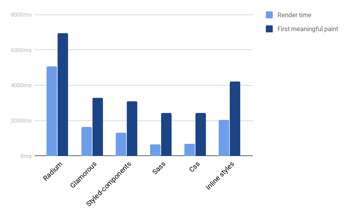 如图(图片来源于THE PERFORMANCE OF STYLED REACT COMPONENTS), 这个图片是17年的了,但是大抵的趋势还是这样。