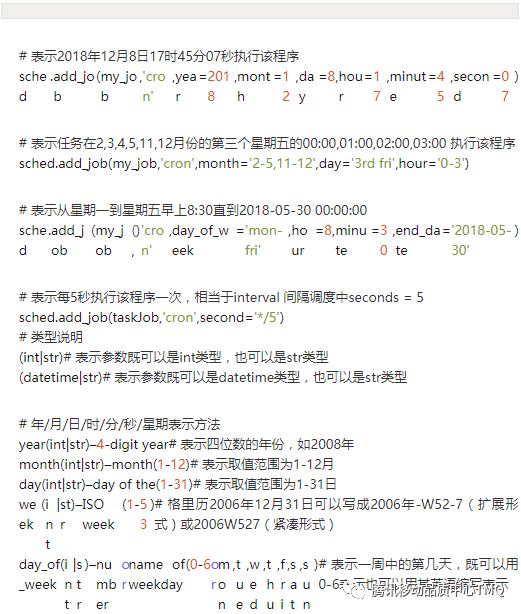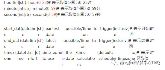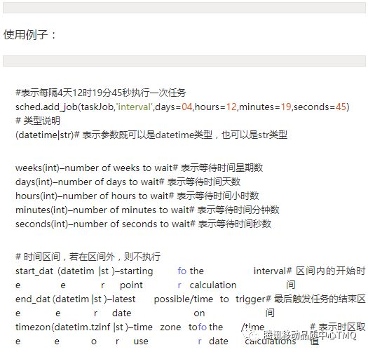 add_job() 方法的第二个参数是trigger,它管理着作业任务的调度方式,它可以被设置为 data 、 interval 、 corn 三种类别。对于不同的设置类别,对应的参数也有所不同,具体如下: