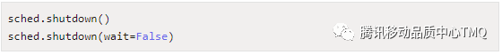 在默认情况下,调度器会等所有的作业任务完成后,自动关闭所有的调度器及作业存储。若在使用过程中不想等待,可以将 wait 参数选项设为 False ,则表示直接关闭: