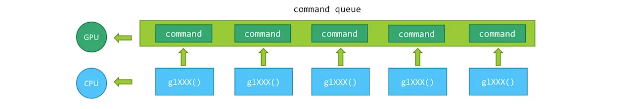 我们知道,我们调用的OpenGL ES方法,都是在CPU上调用的,这些调用最终会被转换成GPU驱动指令而在GPU上执行,而CPU和GPU因为是两个不同的处理器,它们之间自然是可以并行地执行各自的指令,OpenGL ES有一个命令队列用于暂存还未发送到GPU的命令,实际上我们调用的绝大多数OpenGL ES方法,只是往命令队列时插入命令而已,并不会在CPU等命令执行完,因此如果大家去测耗时,会发现OpenGL ES大多数方法,基本都不耗时,无论渲染的东西多么复杂。