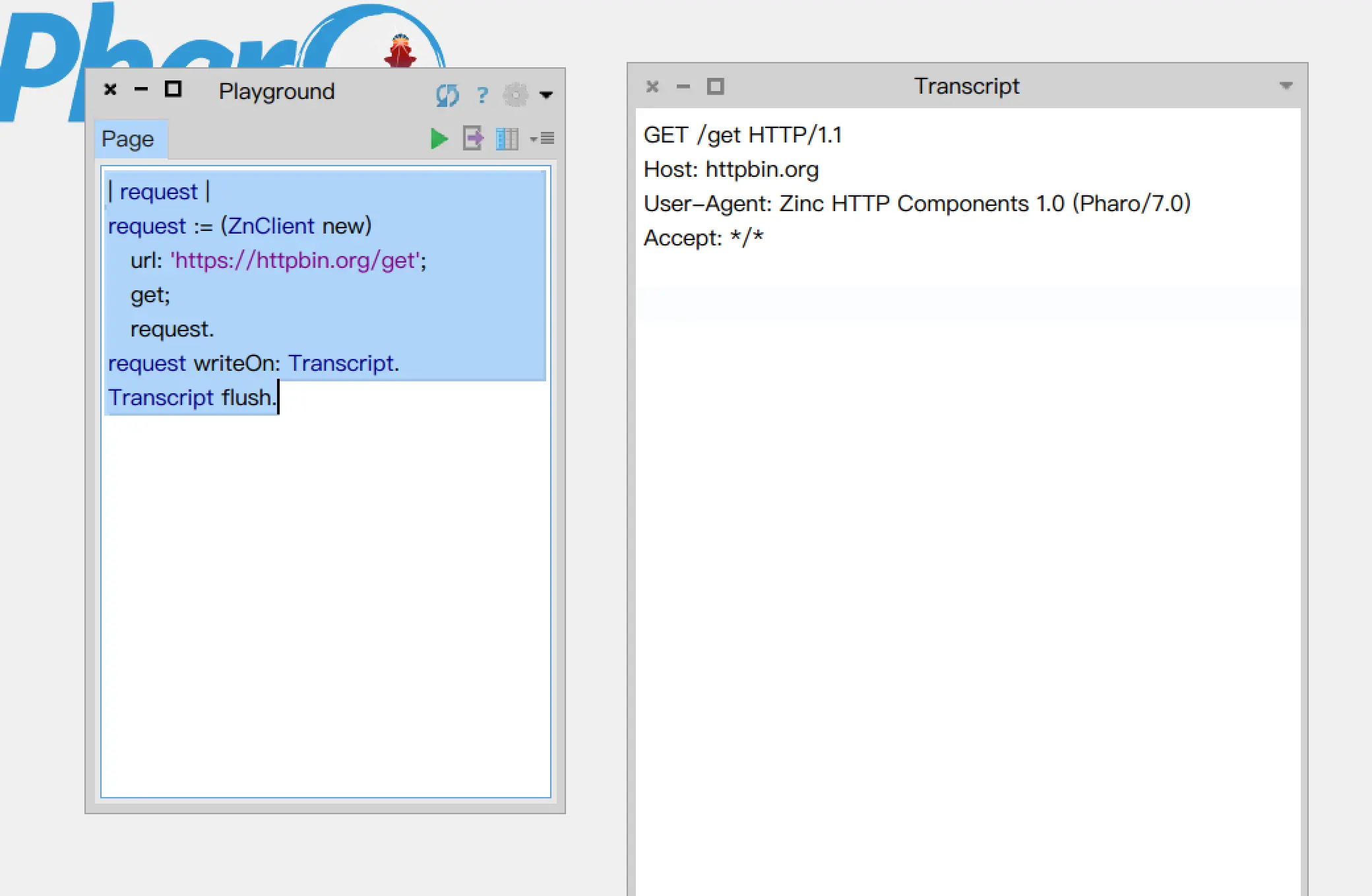在Pharo中,我倾向于使用Zinc作为http client。