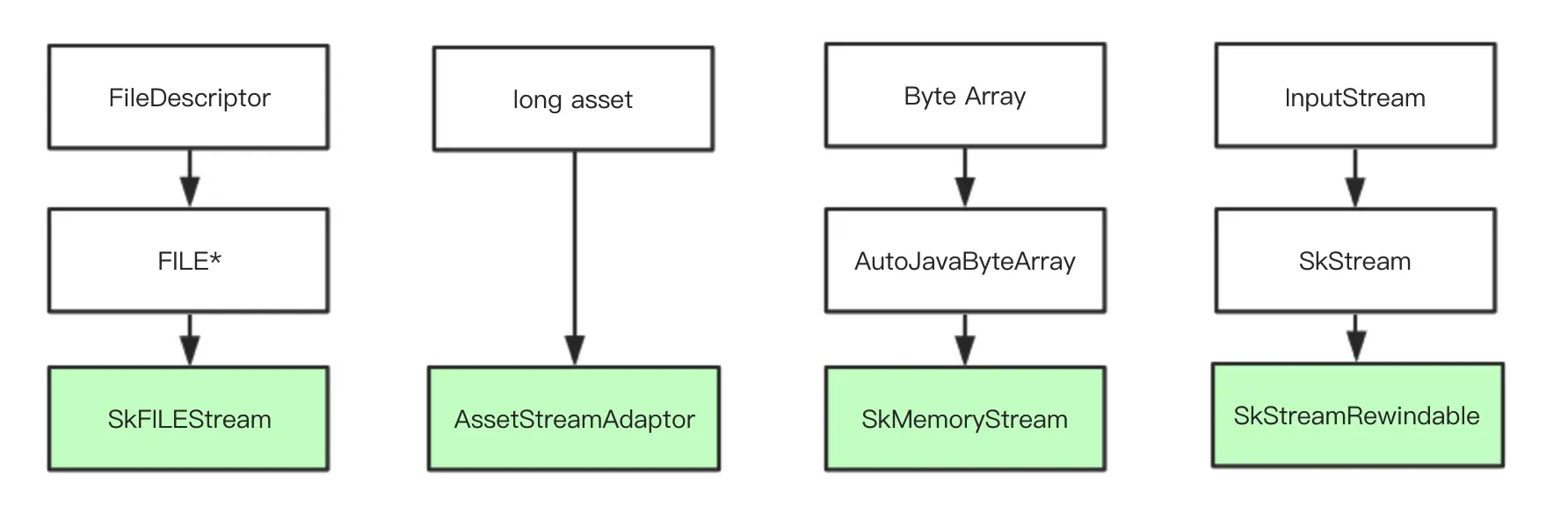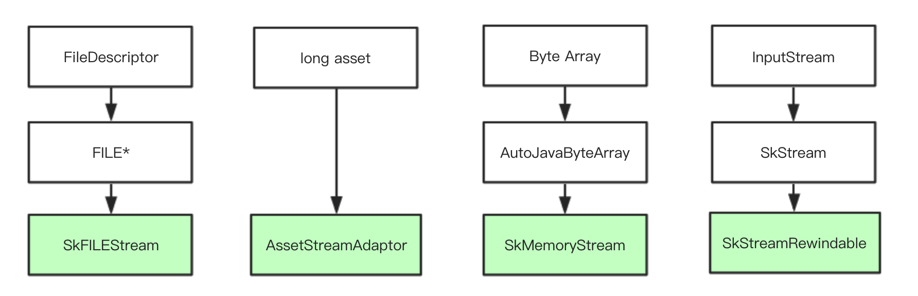 所有的资源都会转换成与 SkStreamRewindable 兼容的数据。