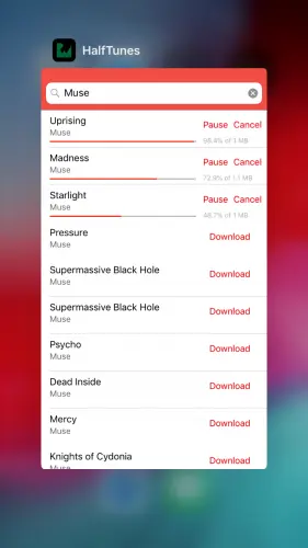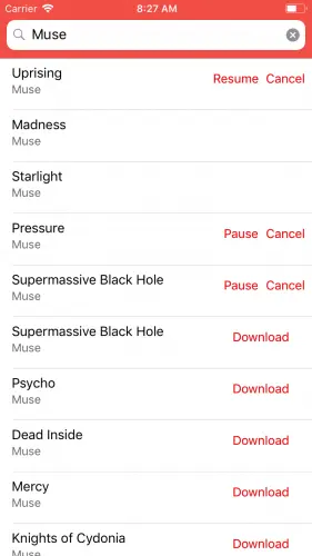 构建并运行您的项目。 同时下载几首曲目,您将能够随意暂停,恢复和取消它们: