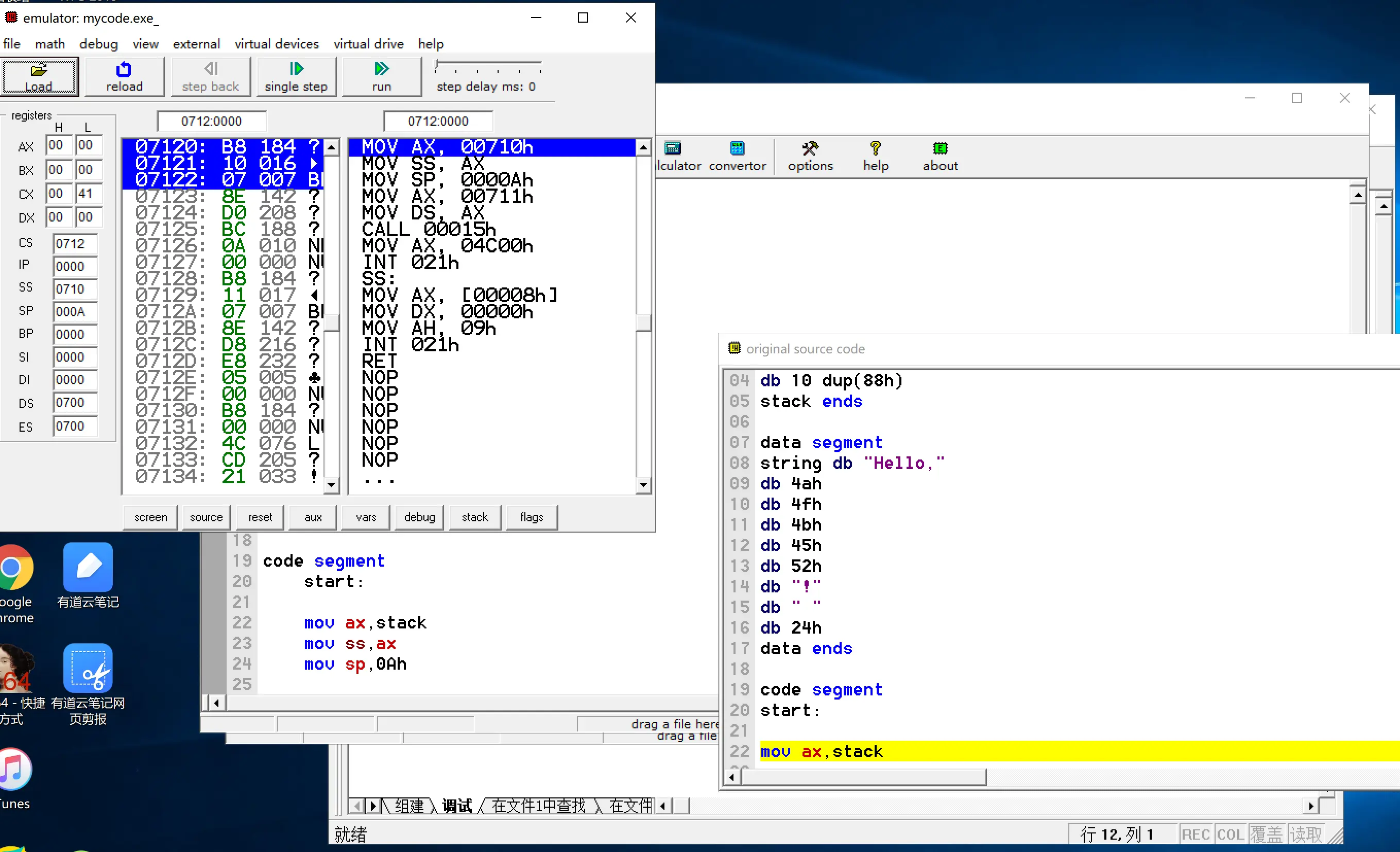 - 汇编语言可以编程为机器语言,机器语言可以反汇编得到汇编语言。