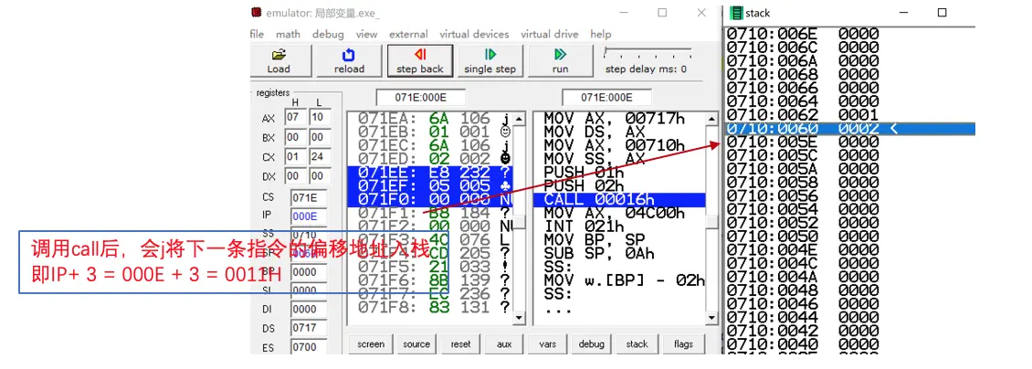 2,push 函数下一条指令的偏移地址