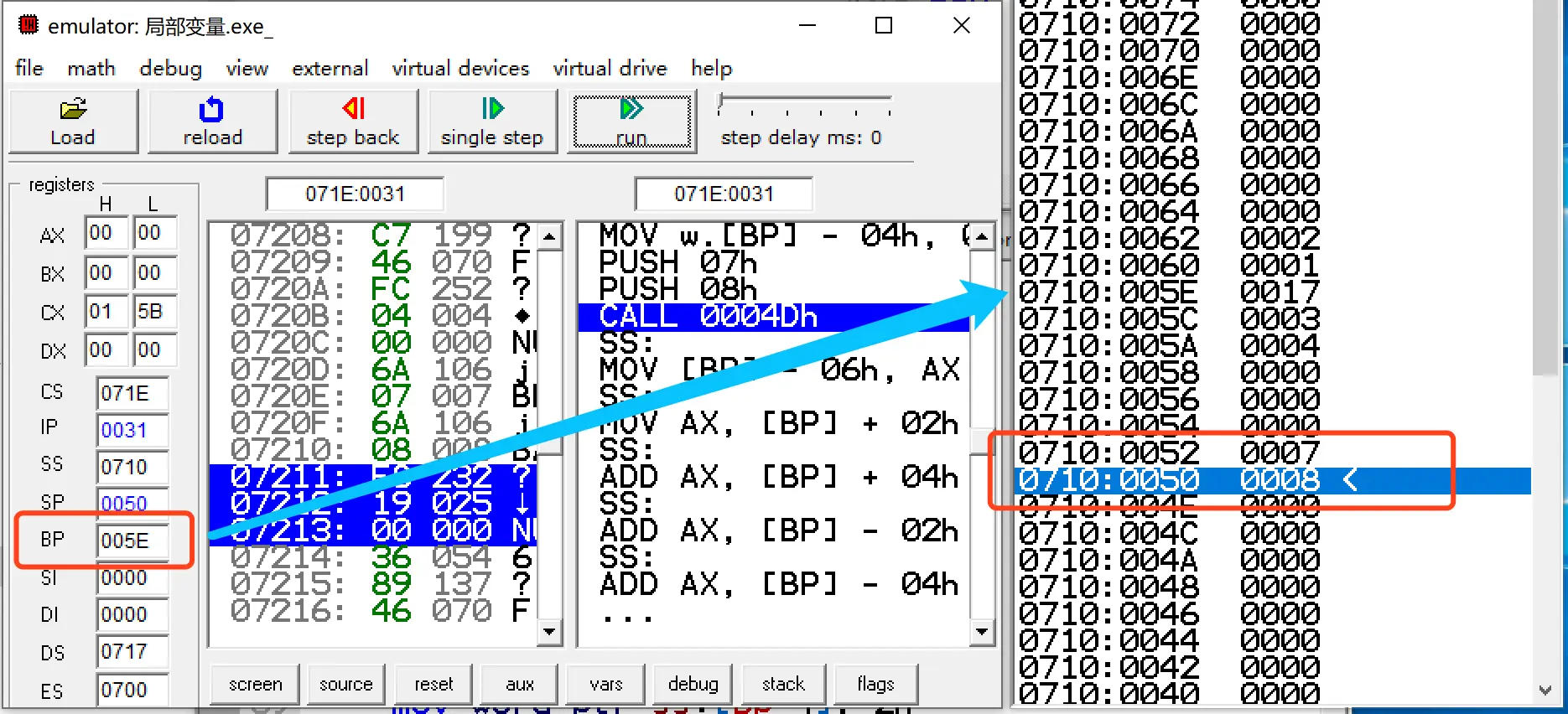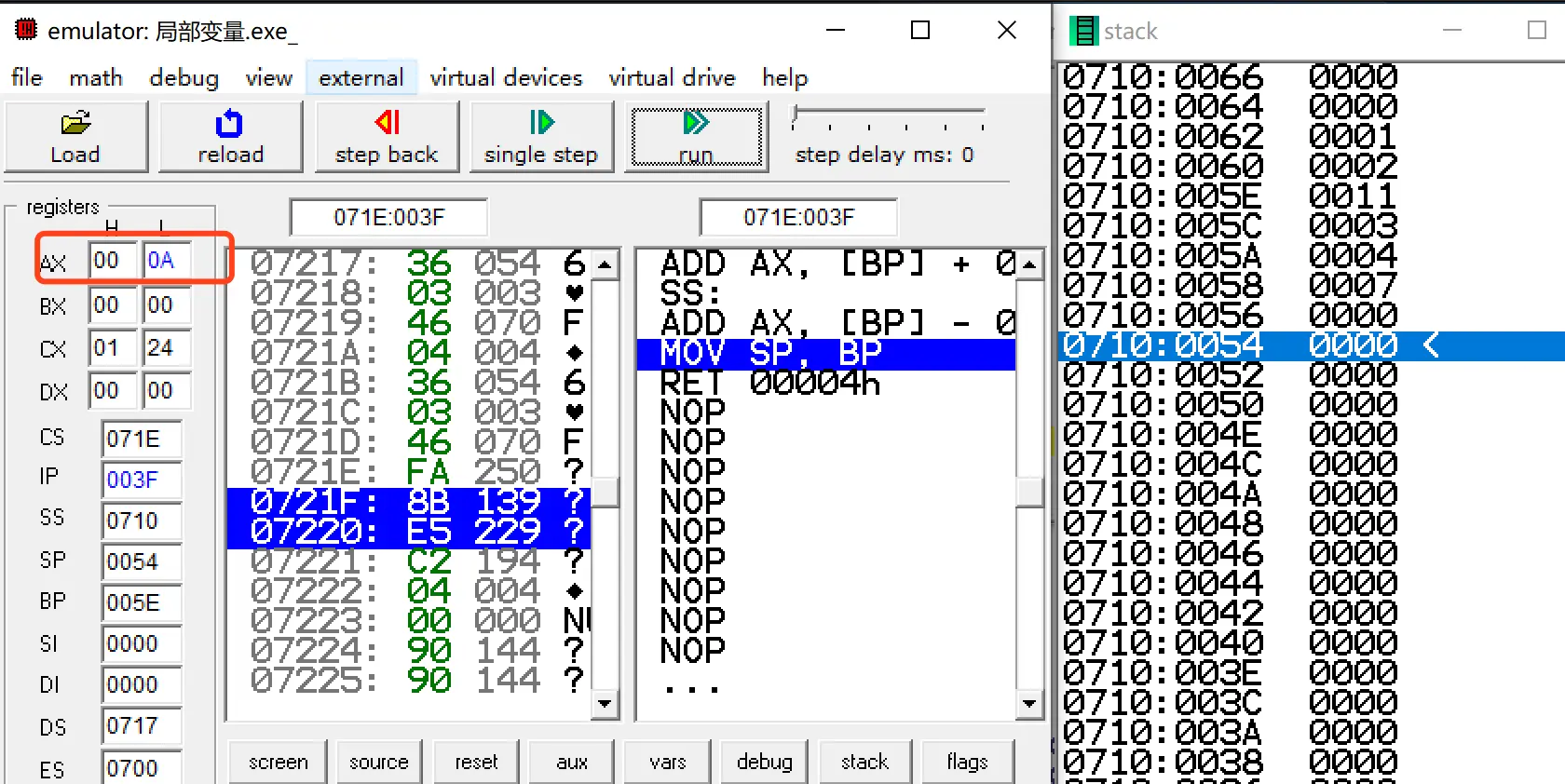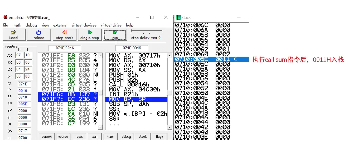 // 对应我们汇编代码的 push bp