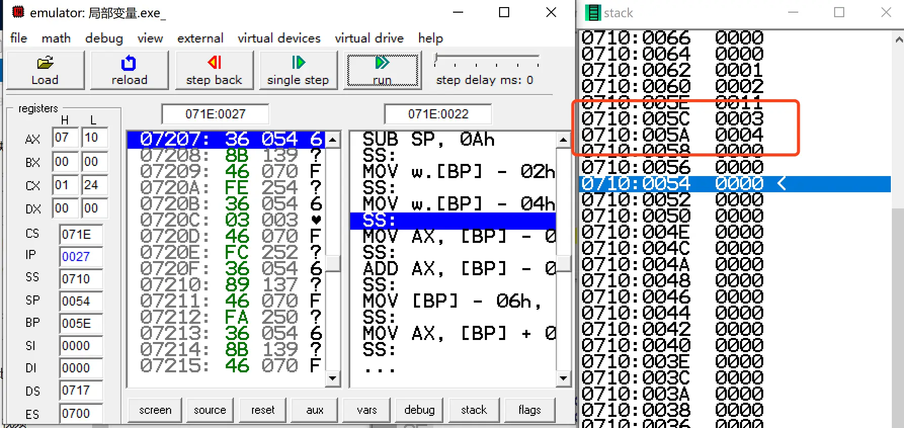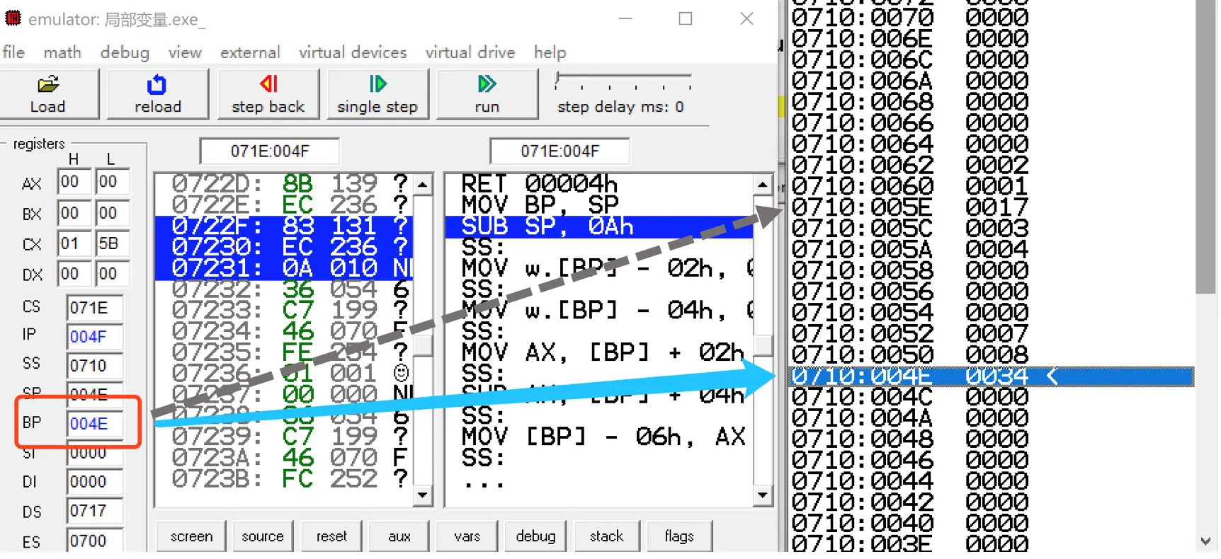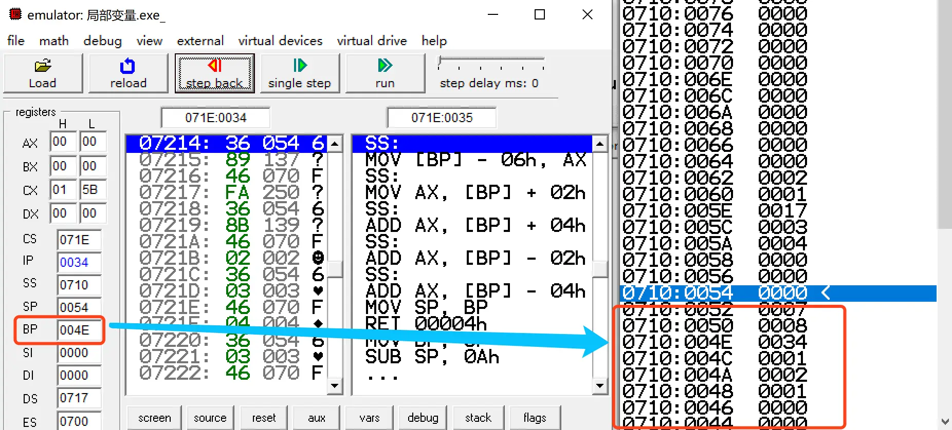 // 局部变量 通过 bp-x 赋值