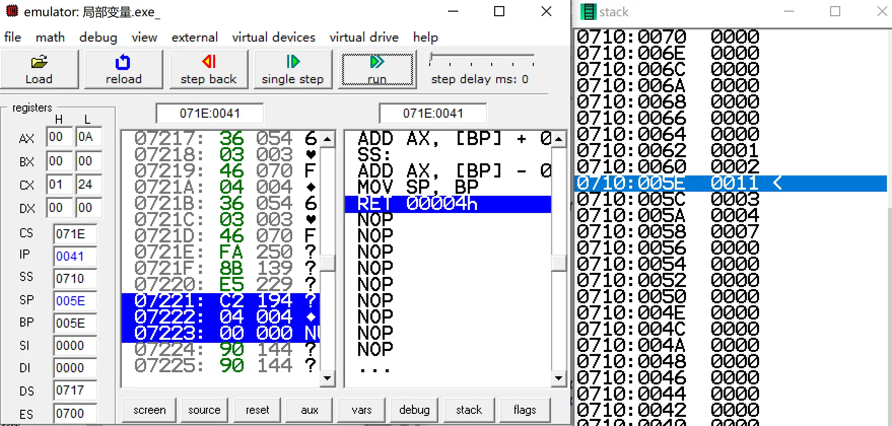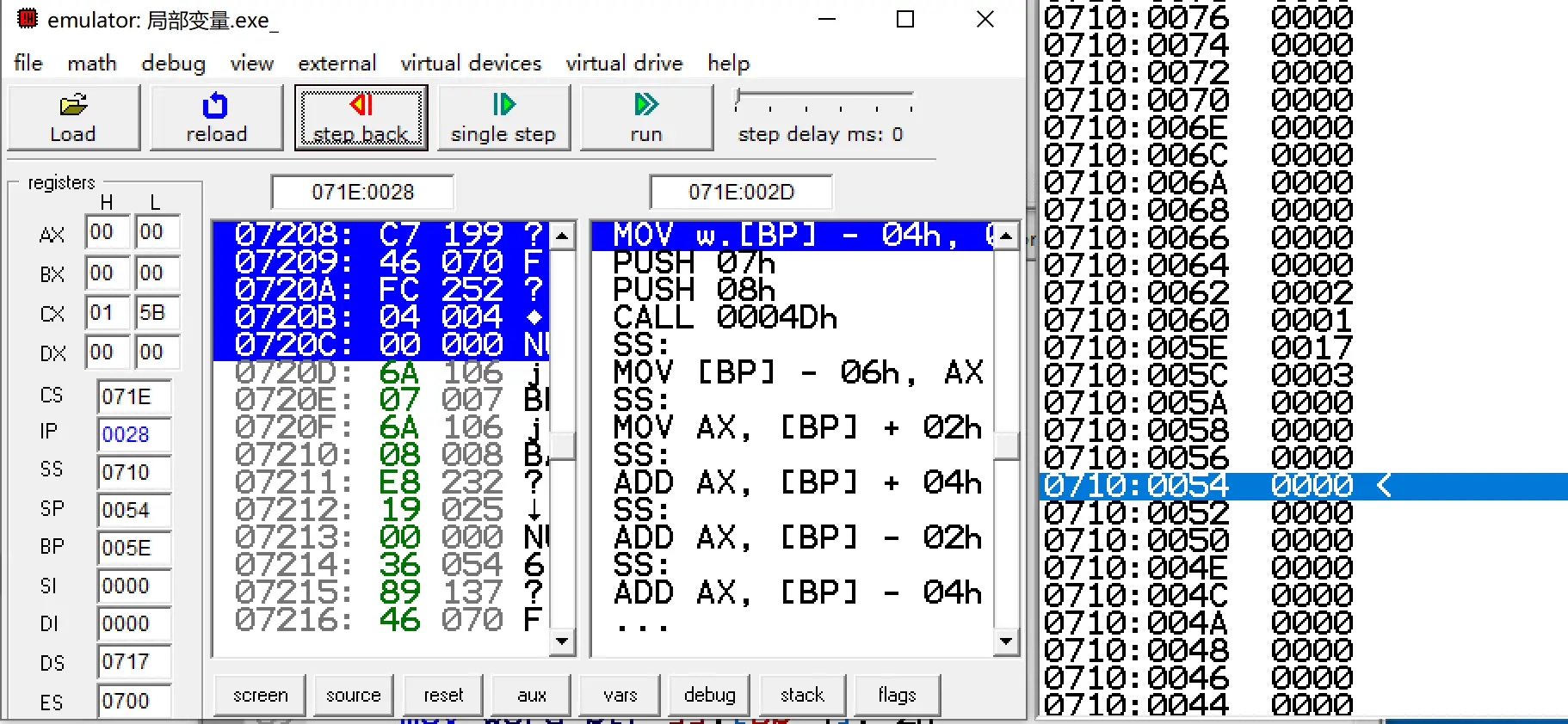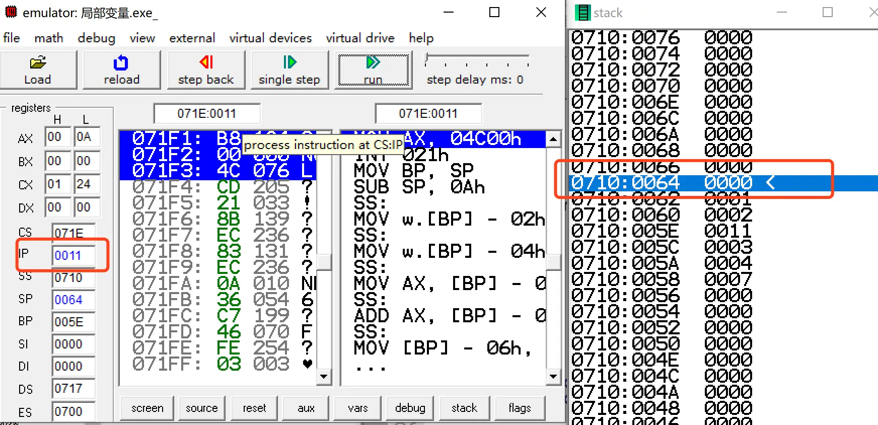 // 局部变量 通过 bp-x 赋值