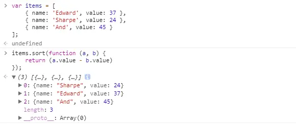 sort 的参数函数本身接受两个参数,表示进行比较的两个数组成员。如果该函数的返回值大于 0,表示第一个成员排在第二个成员后面;其他情况下,都是第一个元素排在第二个元素前面。