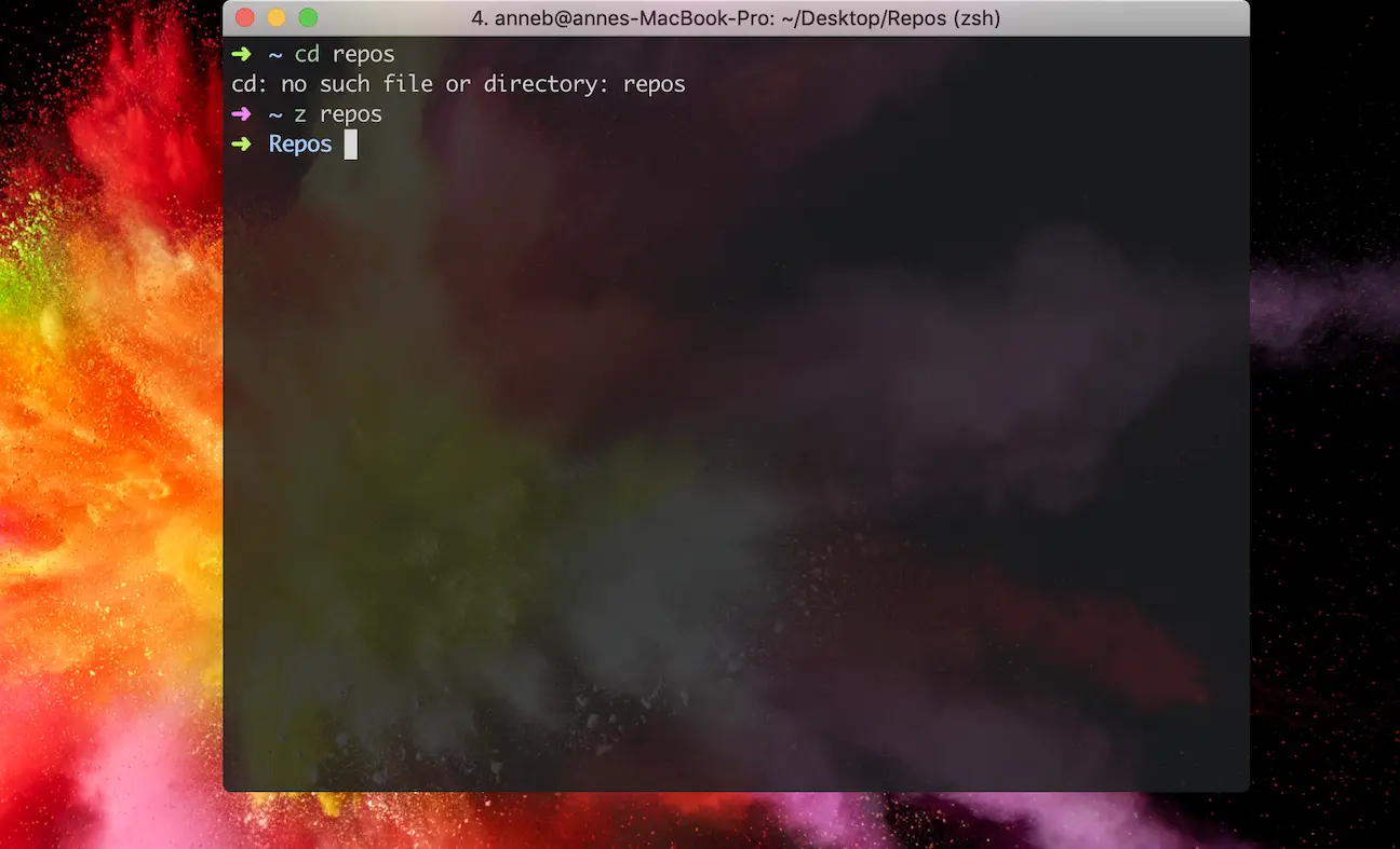 但是你现在可以直接敲 z repos 然后立刻就能从任意位置跳转到那个目录!