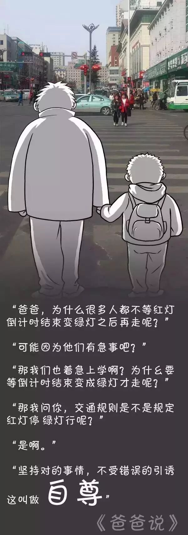 如果有一天,孩子问你为什么别人都闯红灯,我们却要等着?为什么餐厅里别人吃饭那么大声说话,我们却总是很小声?一个人是不是越有钱就越了不起?读书究竟有没有用?……