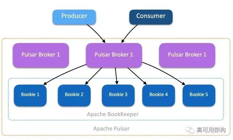 1、独立扩展broker,负责处理Producer发来的消息并分发给消费者。通过一个全局的ZK集群来处理多种协作式任务,例如说基于地理位置的复制。并将消息存储到BookKeeper中,同时单个集群内也需要有一套ZK集群,来存储一些元数据。