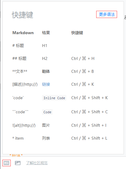 本来初次点击写文章就应该看的,结果不小心关掉。只好从别的地方找了教程自己练习。后来发现编辑器的左下角就有帮助。