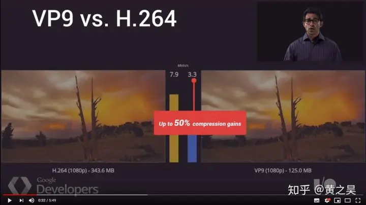 vp9的窄带高清的能力,在全球范围内为youtube带来了非常可观的增长。在你可能因为vp9感到兴奋时,youtube去年在vp9的基础上又再推出了av1,av1比vp9体积又减少了30%。