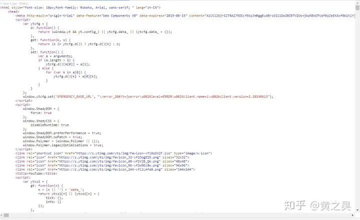 查看页面源代码我们可以看到youtube的html是做了SSR的,但并没有做data→dom的这一步,因此当中不仅有模块初始化的JS、CSS代码外,还有包含关键数据的JSON。观察下来youtube页面基本遵循了一个规律,有共性需要的js、css才做外联,当前页面所必须的js与css做内联。可能一部分同学会质疑这个做法与曾经的优化建议里说的不一样,经过B站自己的实验证明,在html文件体积可控的情况下把页面必须的js、css内联,首屏的渲染速度会有较大的提升,其收益主要来自减少了http建联的时间。在用户真实的使用场景当中,每有一个请求在播放器初始化之前,哪怕是一个http204的请求都会对我们视频首帧播放的8分位时间有50-100ms的影响。