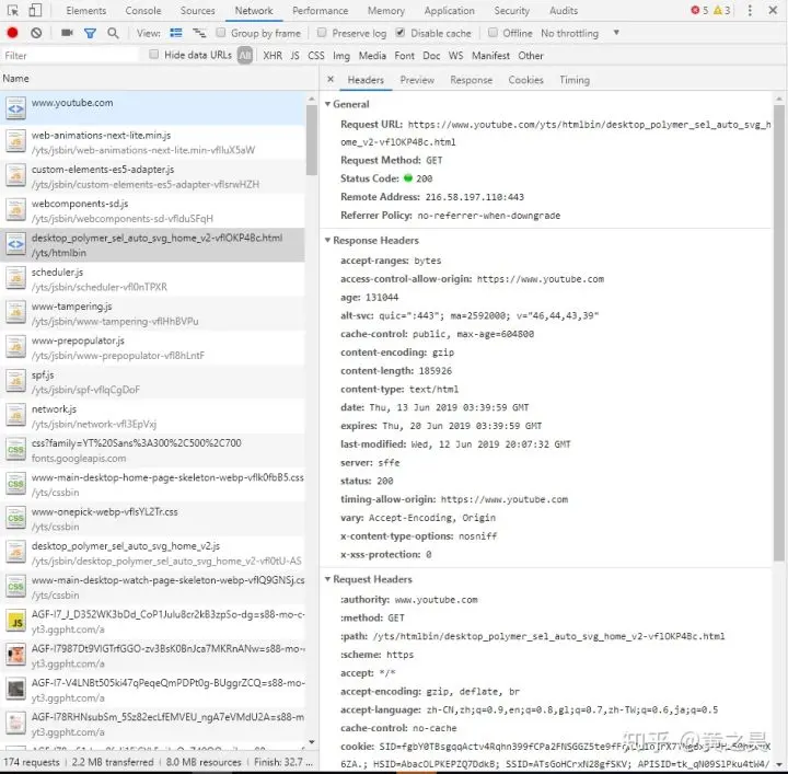 接下来我会逐个请求分析youtube究竟使用那些国内大家不那么常用的技术,因为点会比较多我在正文中就不一一详细介绍了但都会配上相关阅读连接,我只会对与带来关键性能提升的部分做展开分析。