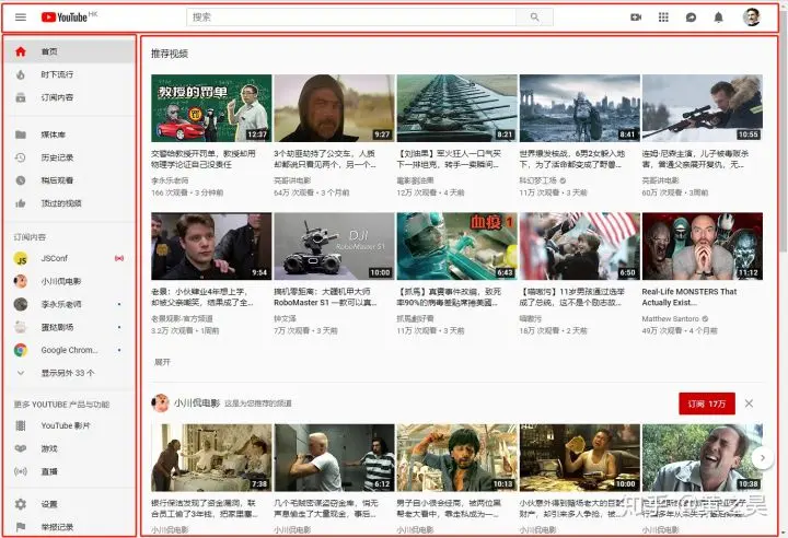 youtube的设计几经修改后最后固化为当前我们熟悉的版本,在不同的页面跳转过程中顶部和侧边栏菜单是作为常驻模块存在,只需要渲染右侧的content。对于大多前端来说新做一个spa项目是相对容易的,而对于youtube这个庞大的网站而言通过重构把多页面重构为单页面的代价远大于收益,因此他们是通过spf.js框架来解决这个问题的,劫持全局A链接的点击事件,只请求下一个页面渲染所需的数据在当前页面完成渲染,避免了大量无意义的http建联和模块重新渲染的开销,加快了页面渲染的速度。