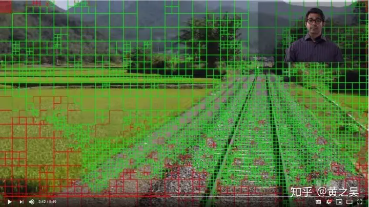 另一项魔法如上图,我们可以看到一帧画面被分割成了不同尺寸的格子,youtube对此进行了自动量化的实验,目的是对于视觉敏感的区域输出更多的细节,对于不敏感的区域降低细节。