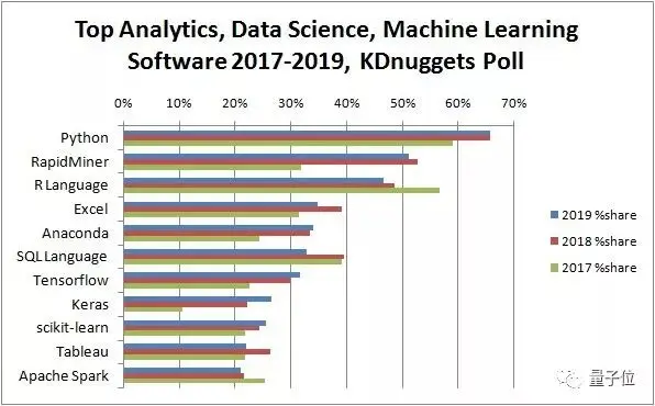 近20年来,KDnuggets每年都会进行一次调查,来研究数据分析和机器学习领域各个工具的使用情况,已然成为观测这一行业变化与趋势的重要参考依据。