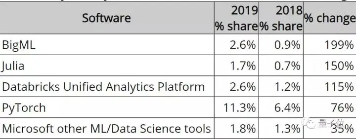 Python持续领跑;2019年有近半用户使用过深度学习工具;PyTorch增长速度是Tensorflow的13倍……