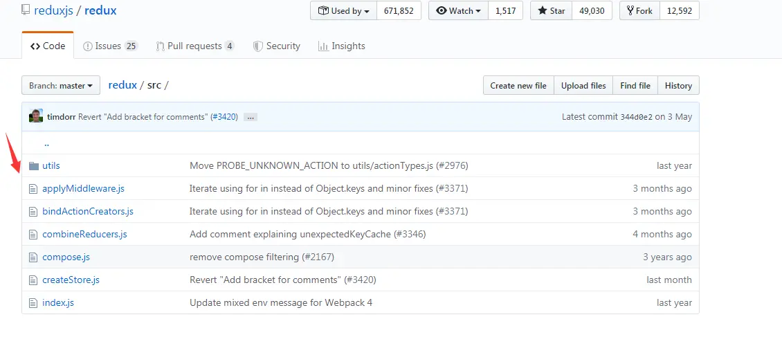 这是github上的源码目录,目录文件不是很多,第一篇首先分析的是入口redux的createStore.js