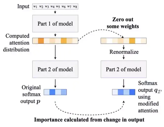 谈论可解释性的现有工作只是开始评估计算出的注意力权重传达出怎样的信息。在本文中,研究者应用了一种基于中间表征擦除的不同分析方法来评估是否可以依赖注意力权重来解释输入到注意力层本身的相对重要性。他们发现:注意力权重只是对中间成分重要性的嘈杂预测,不应被视为决策的理由。