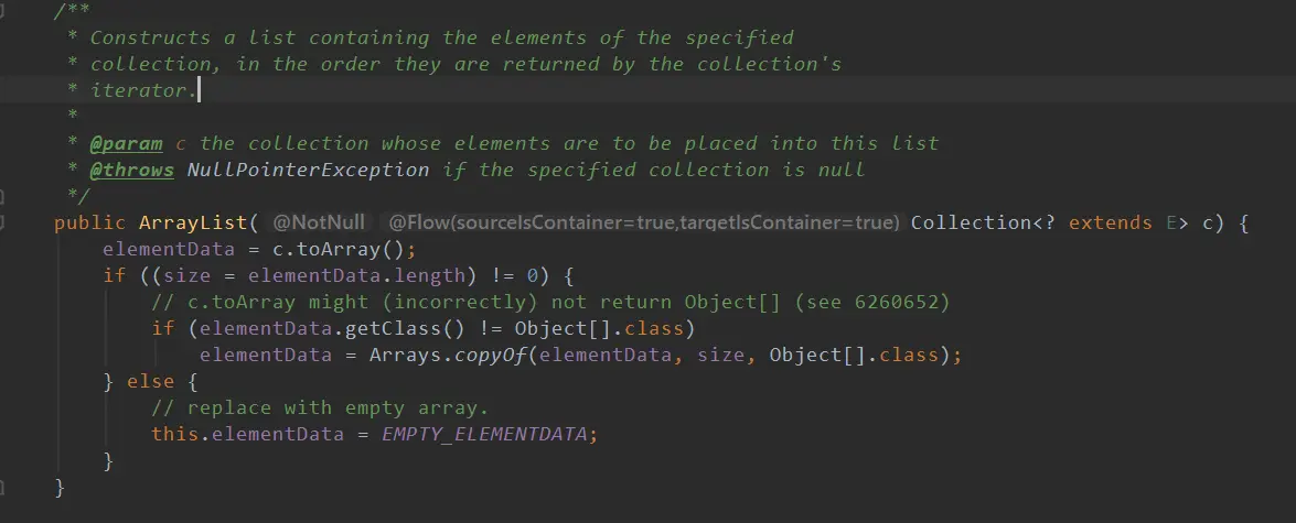 看源码我们可以看到传入Collection的构造方法做的事情就是复制数组,将已有的集合复制到新的集合中。