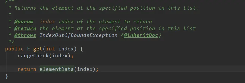 return (E) elementData[lastRet = i];